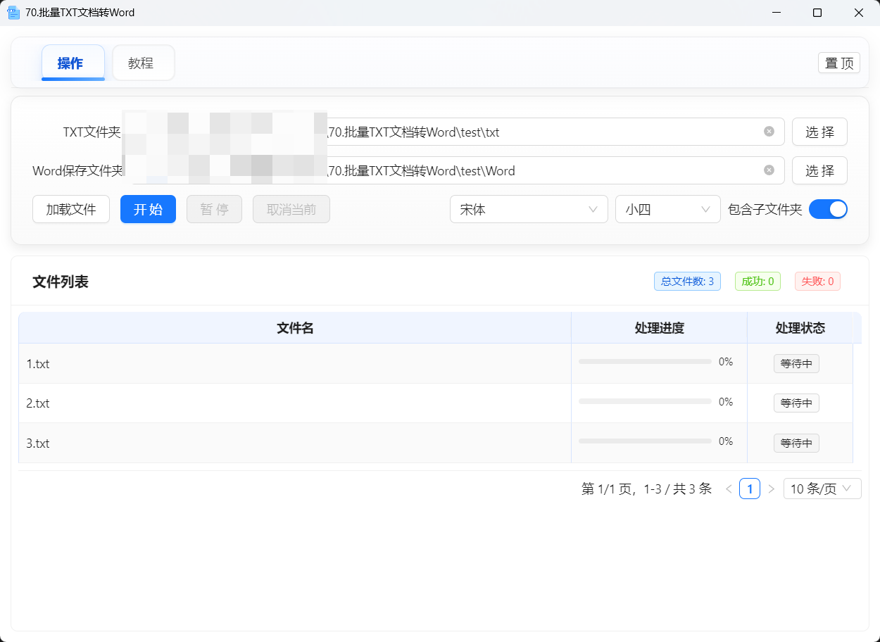 本软件专门用于批量将TXT文本文件转换为Word文档(.docx格式)。